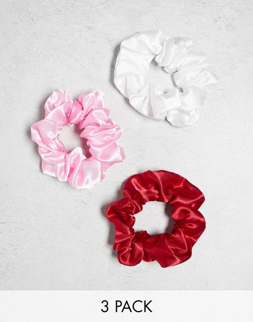 ASOS DESIGN – 3er-Pack Haargummis aus Satin in Rot, Rosa und Weiß