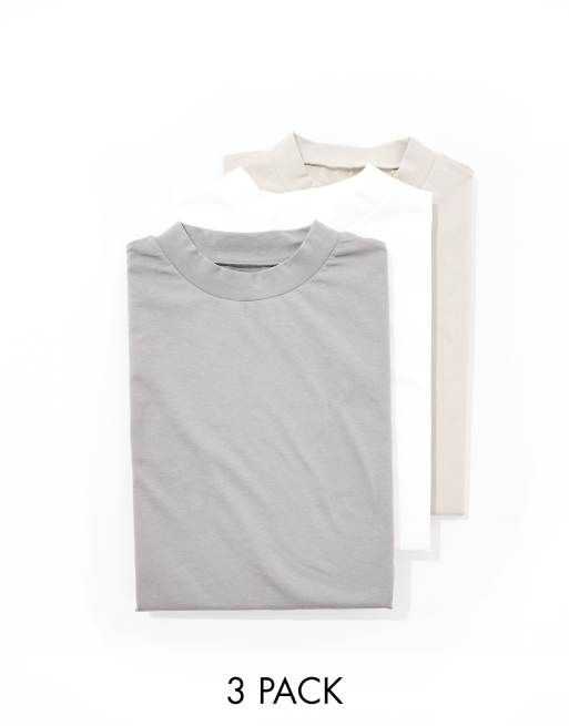 ASOS DESIGN – 3er-Pack hochgeschlossene Oversize-T-Shirts in verschiedenen Farben