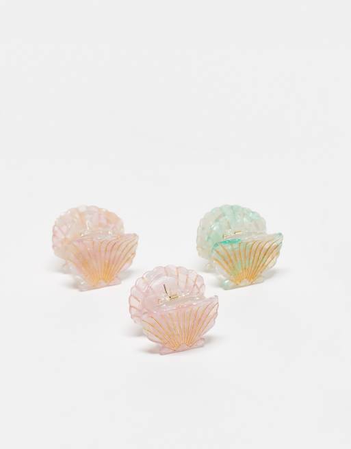 ASOS DESIGN – 3er-Pack Mini-Haarklammern im Muschel-Design in verschiedenen Farben