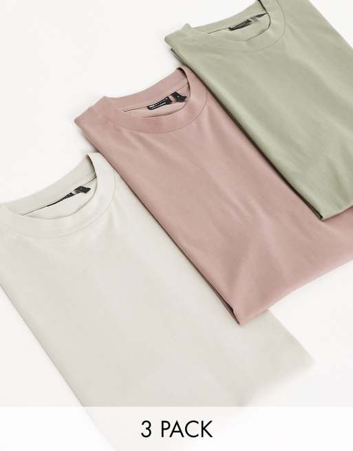 ASOS DESIGN – 3er-Pack Oversize-Trägertops in Rosa und Khaki
