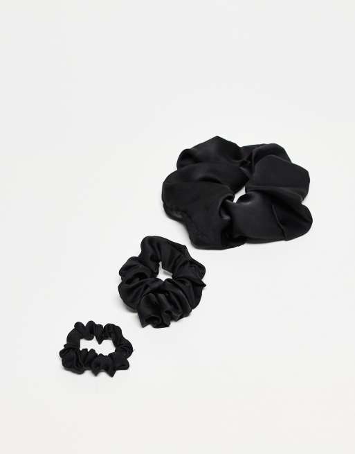 ASOS DESIGN – 3er-Pack Scrunchies aus Satin in Schwarz