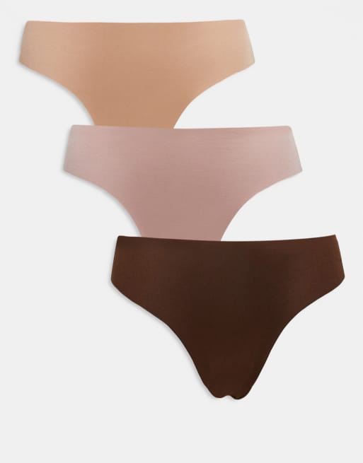 ASOS DESIGN – 3er-Pack sich nicht abzeichnende Brazilian-Slips in neutralen Farbtönen