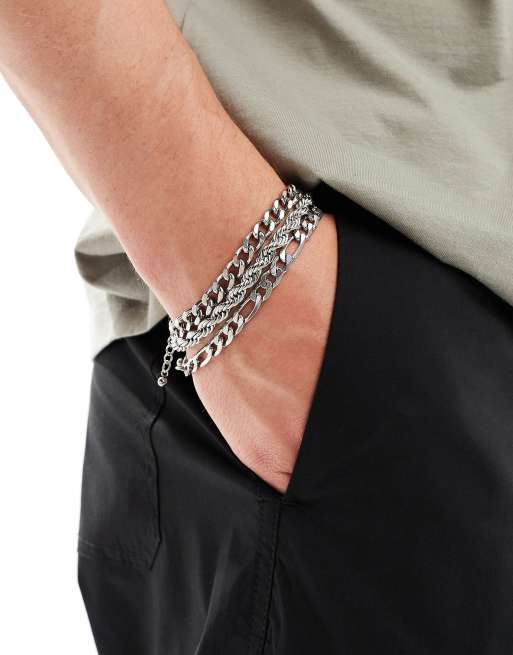 ASOS DESIGN – 3er-Pack silberfarbene Kettenarmbänder aus wasserfestem Edelstahl
