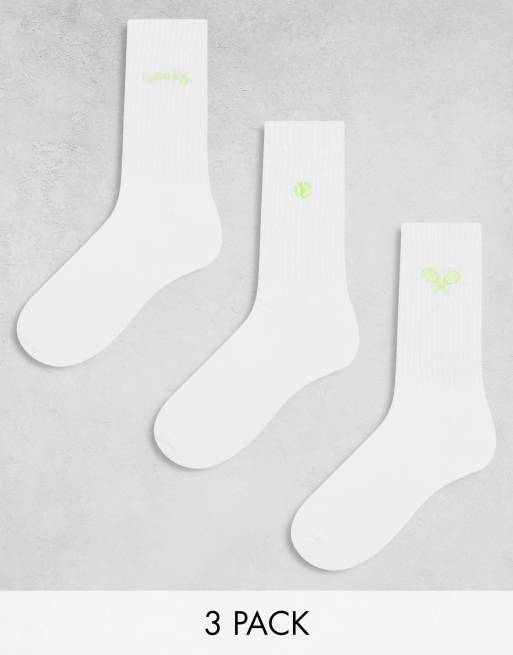 ASOS DESIGN – 3er-Pack Socken in Weiß mit Tennis-Stickerei