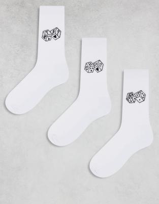 ASOS DESIGN – 3er-Pack Socken in Weiß mit Würfel-Stickerei