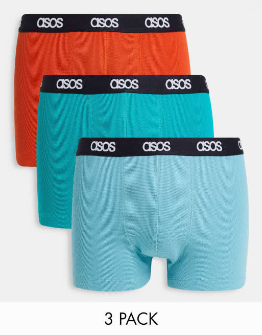 ASOS DESIGN – 3er-Pack Unterhosen in knalligen Farben mit Waffelstruktur