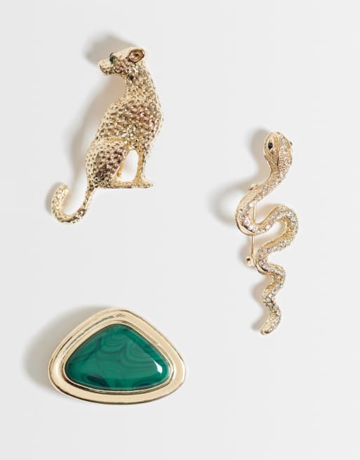 ASOS DESIGN – 3er-Pack verschiedene Broschen in Goldoptik