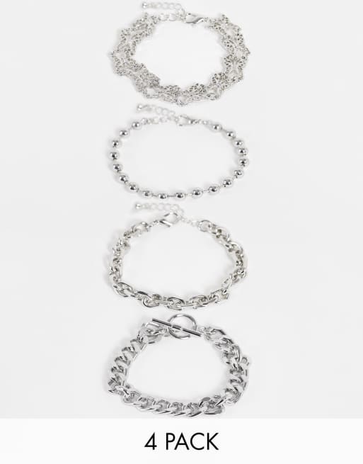 ASOS DESIGN – 4er-Pack silberfarbene Armbänder mit Schmetterlingen