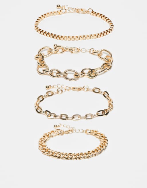 ASOS DESIGN – 5er-Pack mit verschiedenen, goldfarbenen Ketten-Armbändern zum Kombinieren