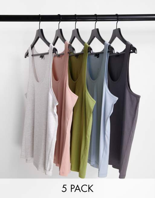 ASOS DESIGN – 5er-Pack Trägertops in verschiedenen Farben mit U-Boot-Ausschnitt