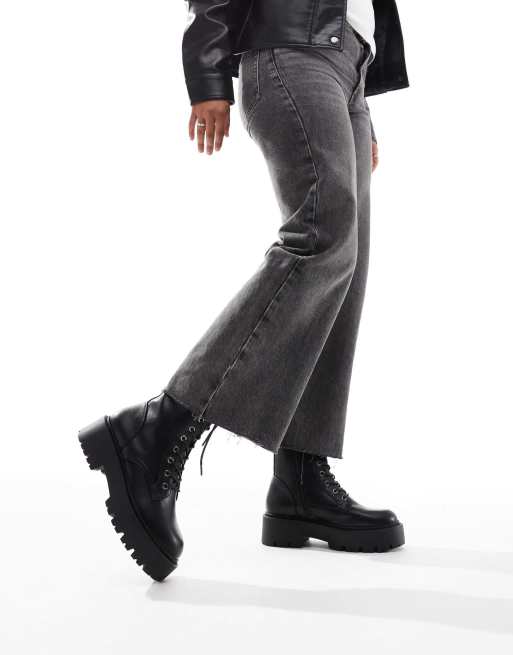 ASOS DESIGN – Adventure – Schnürstiefel in Schwarz mit dicker Sohle