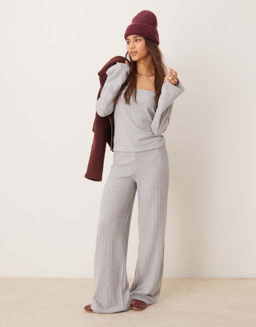 ASOS DESIGN – Angeraute Hose in Grau mit breiter Rippenstruktur und weitem Bein, Kombiteil