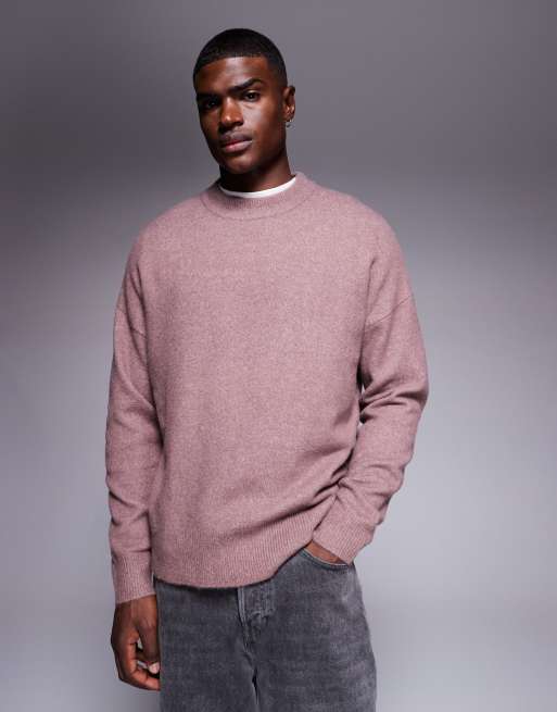 ASOS DESIGN – Angerauter Oversize-Strickpullover in Mauve mit Rundhalsausschnitt