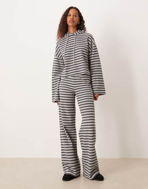 ASOS DESIGN – Angerautes, gestreiftes Set in Grau, bestehend aus Kapuzenpullover und Hose