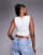 ASOS DESIGN – Angerautes, kurzärmliges Oberteil in Weiß mit asymmetrischem Ausschnitt und Bindedetail in der Taille