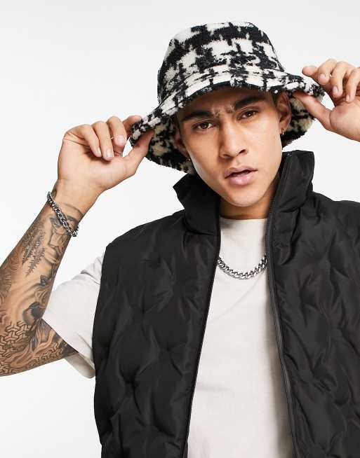 ASOS DESIGN – Anglerhut aus Teddyfell mit Design in Ecru und Schwarz