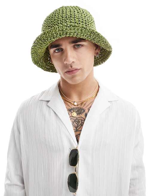 ASOS DESIGN – Anglerhut in Khaki mit Stroh-Mix
