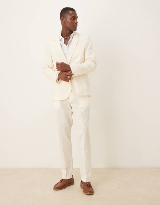 ASOS DESIGN – Anzug in Leinenoptik mit schmalem Schnitt, in Ecru