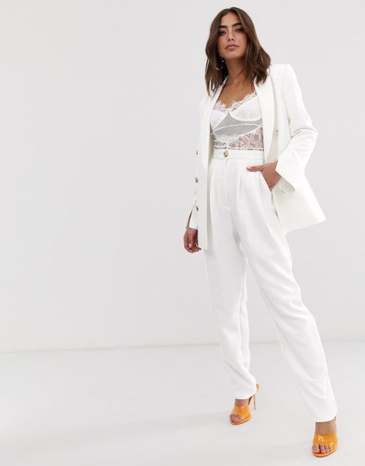 ASOS DESIGN – Anzug mit Blazer und Karottenhose in Weiß