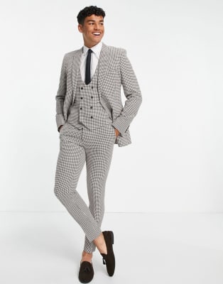 ASOS DESIGN – Anzug mit superengem Schnitt und Hahnentrittmuster in Braun