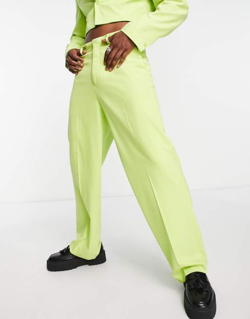 ASOS DESIGN – Anzughose in Limettengrün mit weitem Bein