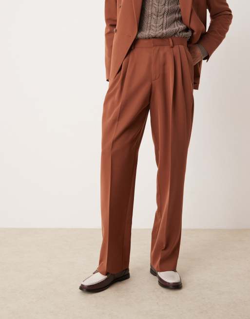 ASOS DESIGN – Anzughose in Rost mit Bundfalte vorne und weitem Bein