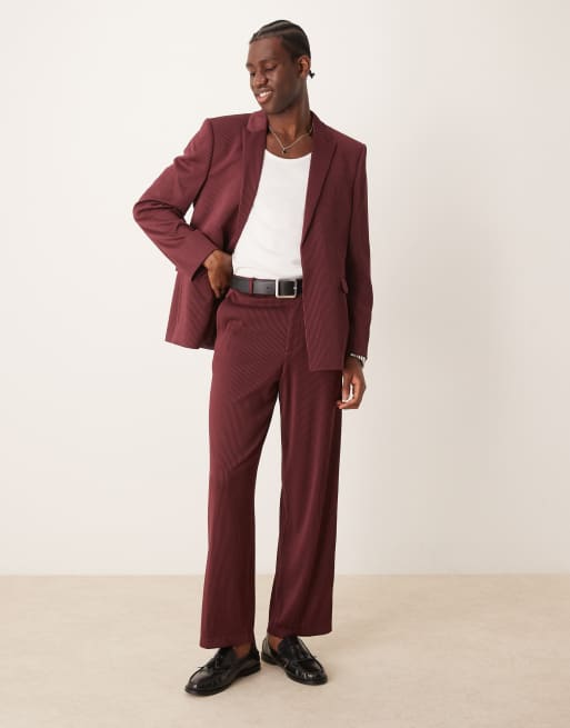 ASOS DESIGN – Anzugjacke aus burgunderrotem Rippstoff in normaler Passform
