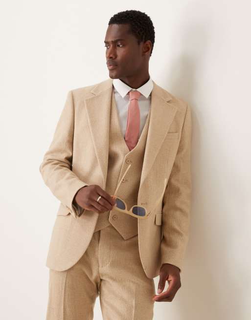 ASOS DESIGN – Anzugjacke aus Wollmischung mit kleinem, beigem Hahnentrittmuster