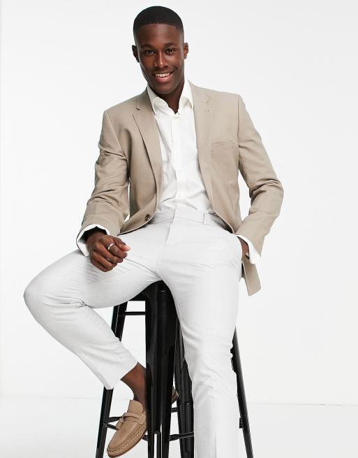 ASOS DESIGN – Anzugsjacke mit sehr schmalem Schnitt aus Baumwollleinen in Taupe