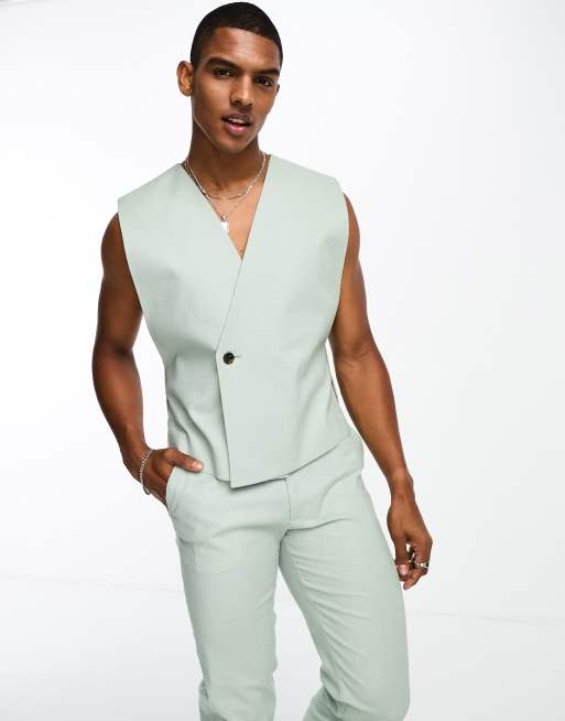 ASOS DESIGN – Anzugweste aus Leinenmix in Salbeigrün im Tabard-Stil