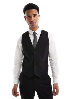 ASOS DESIGN – Anzugweste in dezentem Schwarz mit schmalem Schnitt und Fischgrätmuster