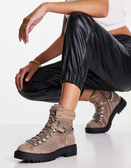 ASOS DESIGN – Arabelle – Wanderstiefel in Taupe mit Kettenbesatz