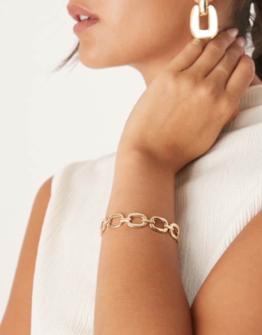 ASOS DESIGN – Armband im Reifen-Design in Gold mit eckigen Kettenelementen