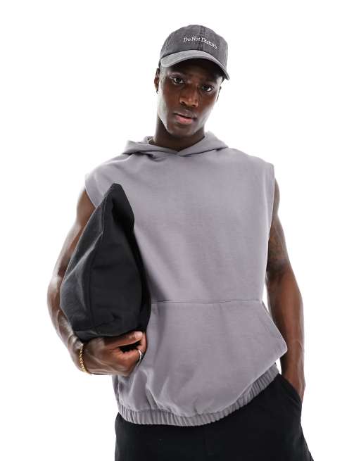 ASOS DESIGN – Ärmelloser Oversized-Kapuzenpullover in Grau
