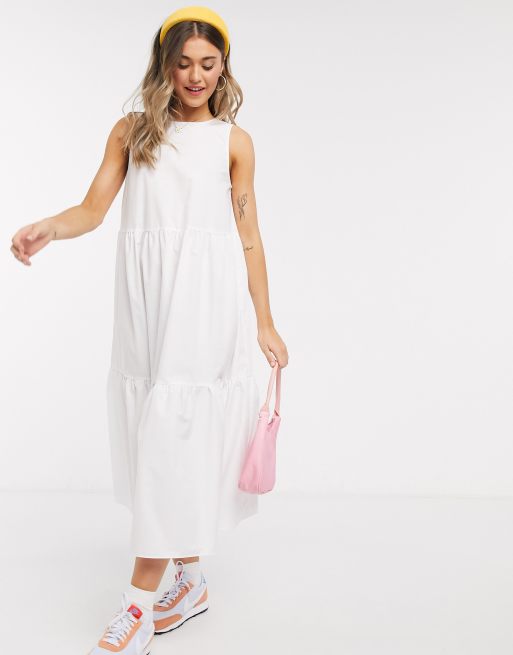 ASOS DESIGN – Ärmelloses, gestuftets Midikleid mit Rückenausschnitt in Weiß