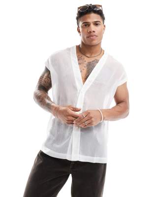 ASOS DESIGN – Ärmelloses Hemd in transparentem Weiß mit lockerem Schnitt und verzierten Knöpfen