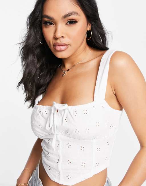 ASOS DESIGN – Ärmelloses Korsett-Oberteil in Weiß mit Lochstickerei