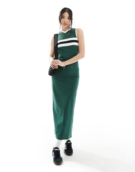 ASOS DESIGN – Ärmelloses Maxikleid in Grün mit V-Ausschnitt und Streifendetail