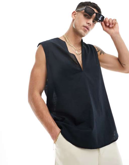 ASOS DESIGN – Ärmelloses Oversize-Shirt in Leinenoptik in Schwarz im Stil der 90er