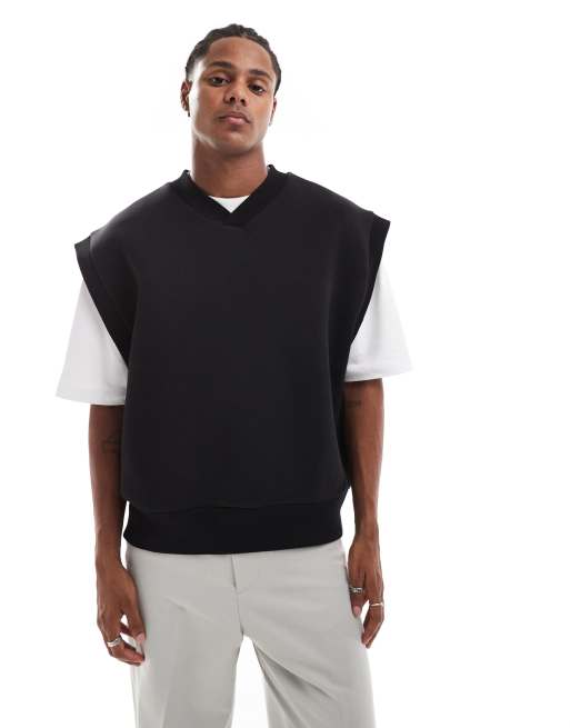 ASOS DESIGN – Ärmelloses Oversized-Sweatshirt aus Scuba-Material in Schwarz mit V-Ausschnitt