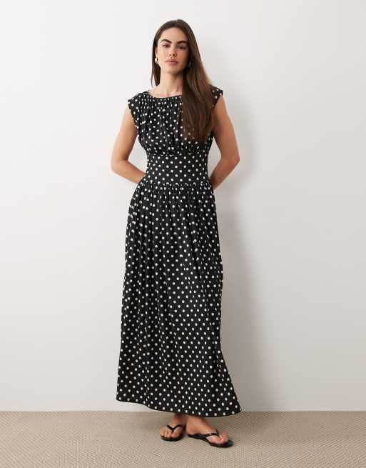 ASOS DESIGN – Ärmelloses, tailliertes Maxikleid in Schwarz-Weiß mit Polka-Dots