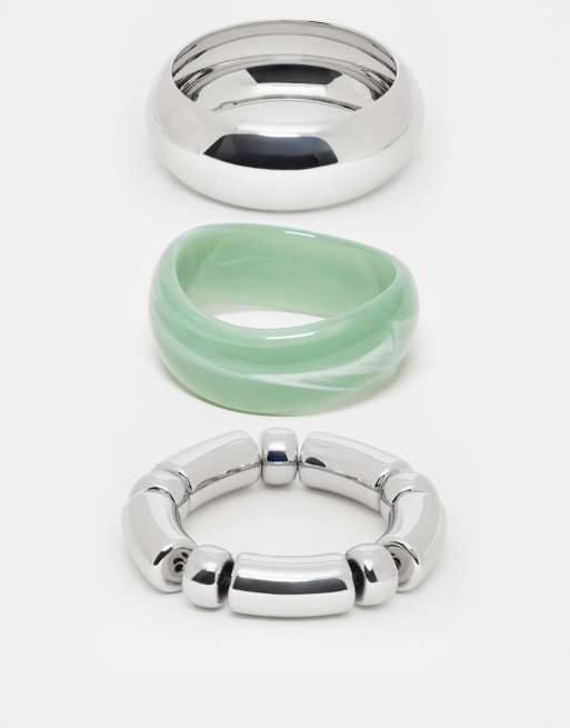 ASOS DESIGN – Armreife aus grünem Kunstharz und in Silber-Optik, 3er-Pack