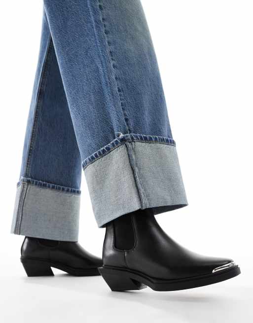 ASOS DESIGN – Aruba – Flache Westernstiefel in Schwarz mit Zehenkappendetail