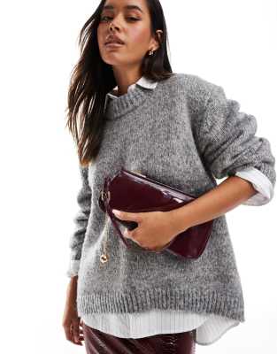ASOS DESIGN – Asymmetrische Schultertasche in Burgunderrot mit Schnalle und abnehmbarem Kugelanhänger