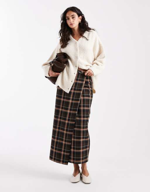 ASOS DESIGN – Asymmetrischer Wickel-Maxirock mit Karomuster