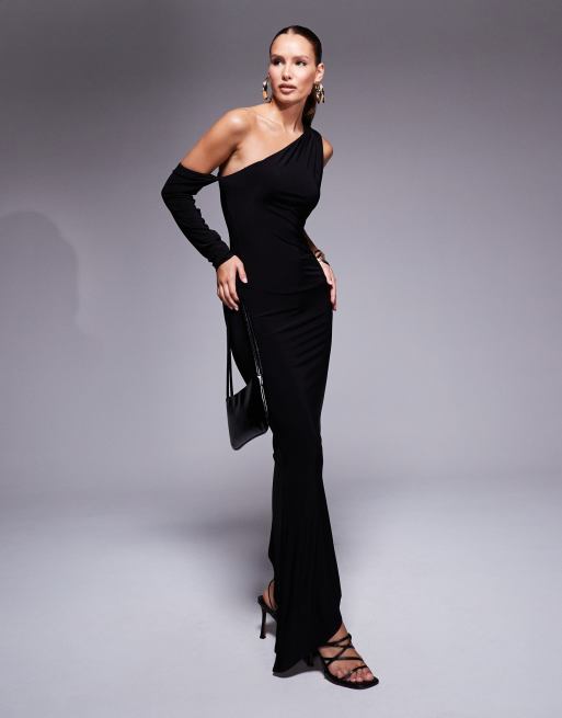 ASOS DESIGN – Asymmetrisches Maxikleid in Schwarz mit One-Shoulder-Design