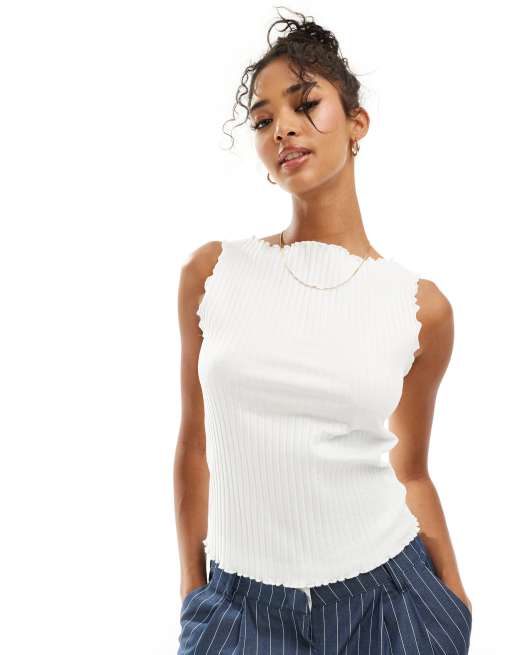 ASOS DESIGN – Asymmetrisches Tanktop in Weiß mit U-Boot-Ausschnitt und ungesäumten Kanten
