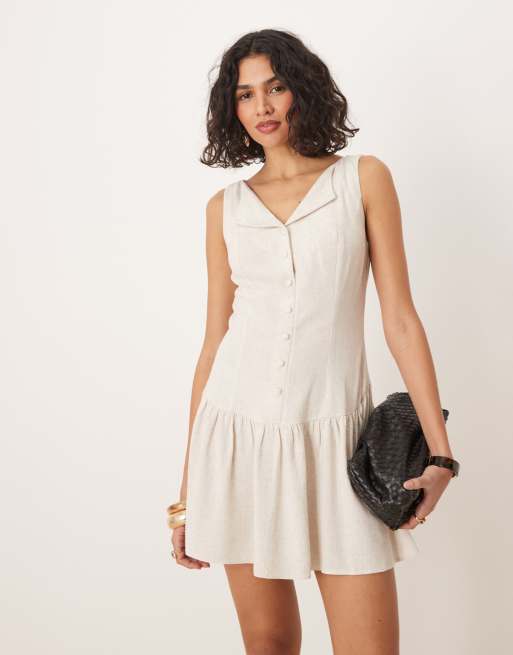 ASOS DESIGN – Ausgestelltes Minikleid in Hellbeige mit tiefer Taille