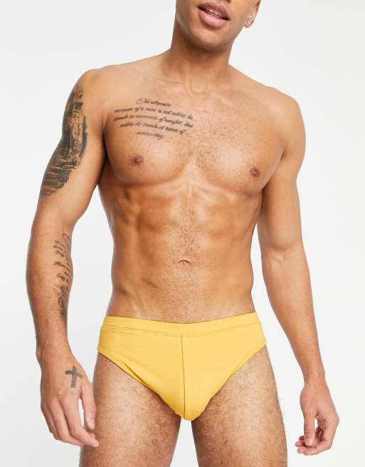 ASOS DESIGN – Badehose in Gelb mit Rippenstruktur