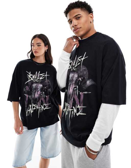 ASOS DESIGN – Band-T-Shirt in Schwarz mit Oversize- und Unisex-Schnitt und „Bullet For My Valentine“-Print